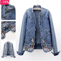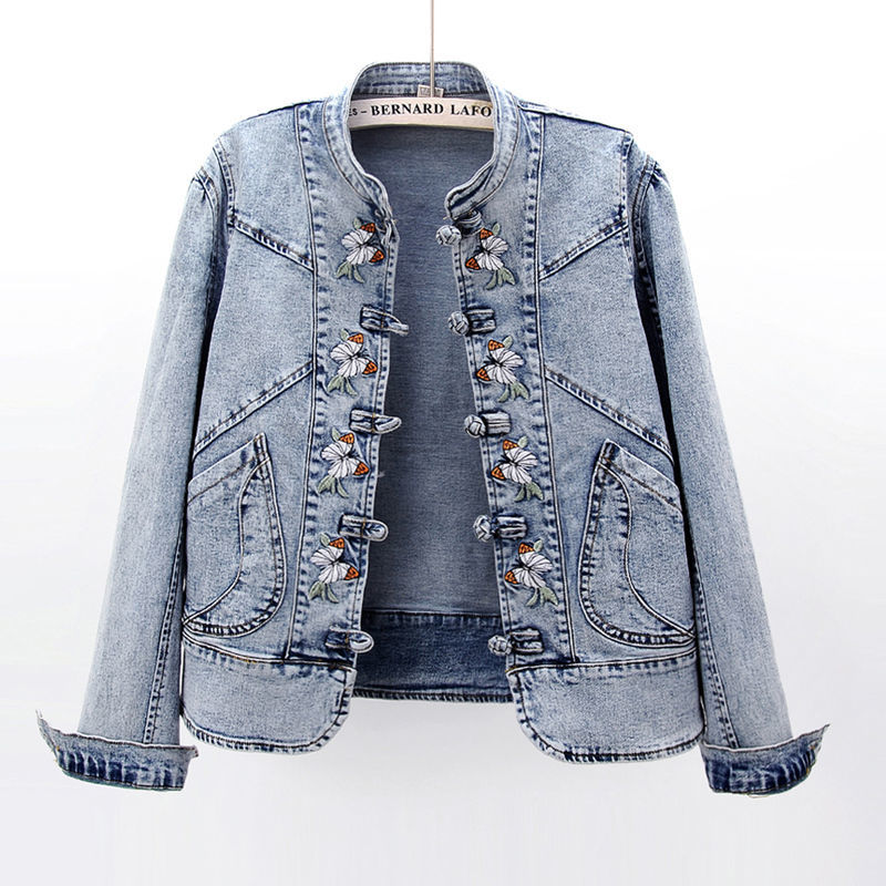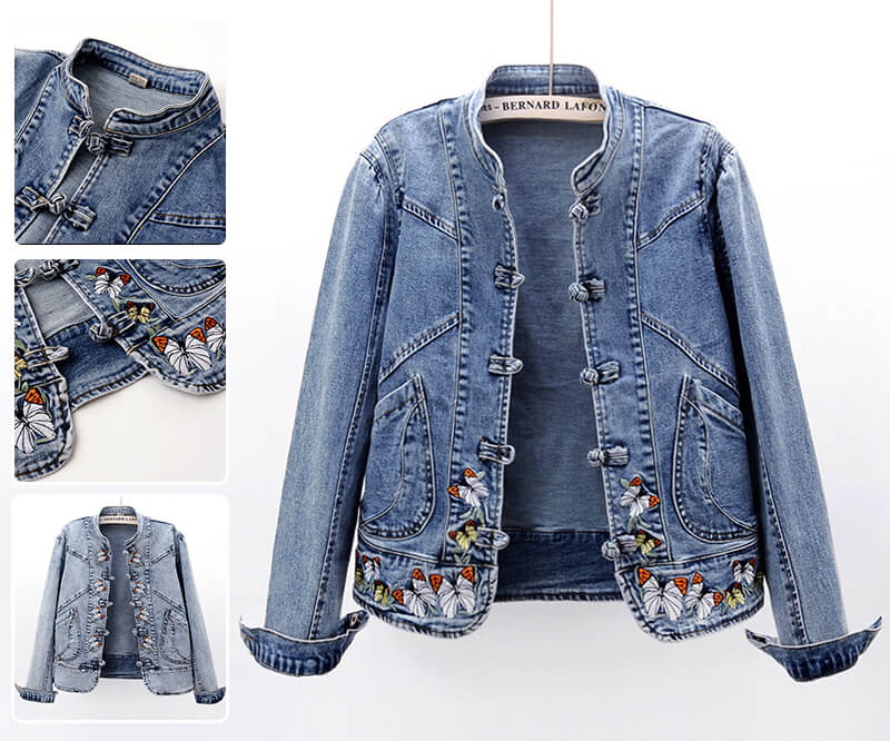 【日本重工精繡彈力牛仔】新款文藝復古刺繡盤扣牛仔外套,獨特版型設計!精緻耐穿,舒適透氣,水洗不變形不褪色,超百搭更顯氣質~