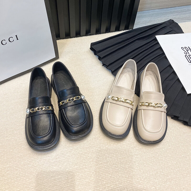 英伦复古风圆头乐福鞋夏季一脚蹬厚底真皮女鞋厚底休闲软皮单鞋女